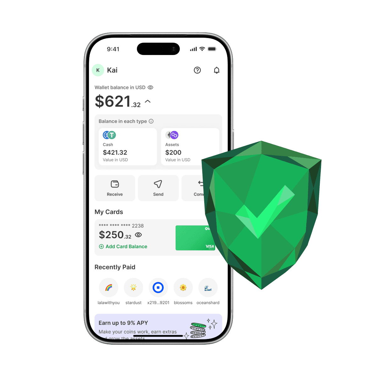 Get your wallet in minutes. Start receiving crypto immediately. No complex setup or seed phrase memorization.