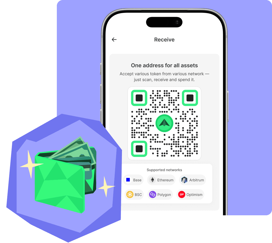 Receive USDC, ETH, and all supported tokens with one address across 6 chains. Simple and efficient.
